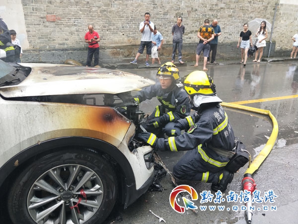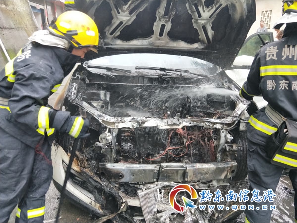 消防救援人員到達事故現場后,經偵查發現,小轎車車頭發生劇烈燃燒,并伴隨著黑煙不斷冒出。隨后,消防員立即鋪設水帶干線對火勢進行控制,進過10多分鐘的撲救,燃燒車輛明火被完全撲滅,在確認無復燃危險后,消防救援人員整理器材歸隊。(黔東南州消防支隊宣教中心)