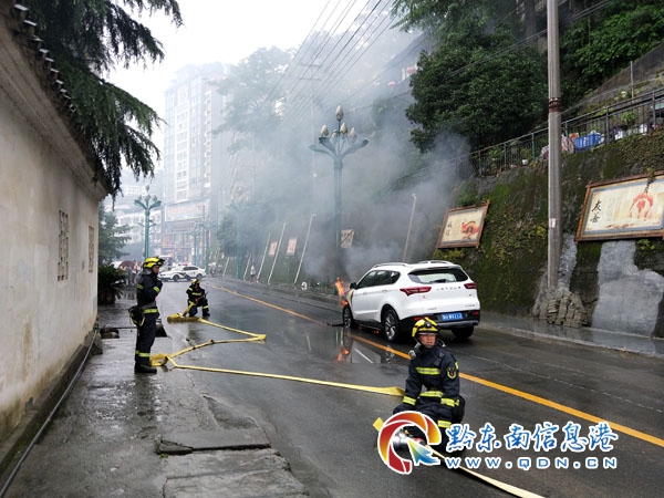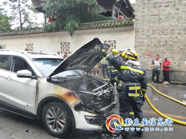 本網訊 6月22日15時10分,錦屏縣消防大隊接到群眾報警稱:位于錦屏縣三江鎮飛山路飛山廟旁,一輛小轎車發生自燃。錦屏縣消防大隊接到報警后,立即出動趕往現場處置。