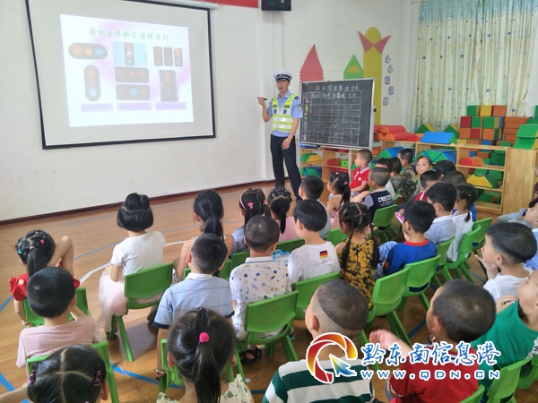 本網訊 6月26日上午,錦屏縣公安局交警大隊走進城關三小幼兒園,為100余名師生及學生家長上了一堂交通安全課。
