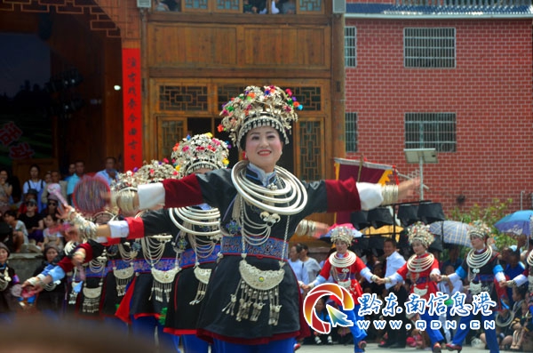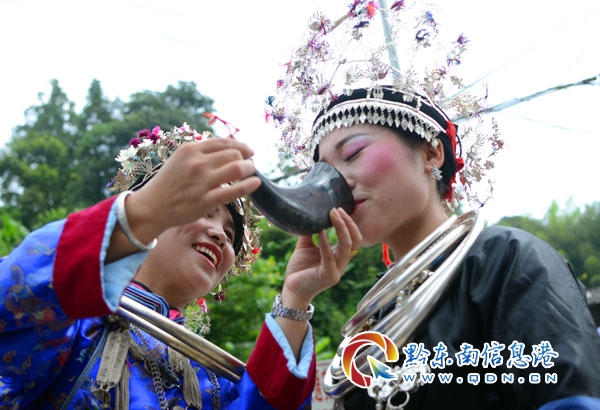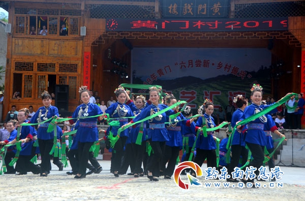 本網(wǎng)訊 7月17日,錦屏縣彥洞鄉(xiāng)侗寨黃門村鑼鼓喧天、彩旗飄揚,來自附近錦屏、劍河、天柱等縣萬余侗族同胞歡聚一堂,穿上節(jié)日的盛裝,載歌載舞,隆重慶祝一年一度的六月嘗新節(jié)。