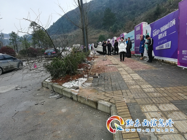 據車主陳先生介紹,當時他一個人開著車正在銀桂大道往凱里市區方向行駛,當他行駛至南湖對面的路段時,看到后方有車要超他,他就回打了一下方向盤避讓那輛車,誰知方向盤打大了,路面又打滑,車一下子就朝著人行道上沖了上去,一瞬間車輛飛了起來,并在空中翻滾。幸好他反應快,在車輛沖上人行道飛起來時就迅速打開車門跳下了車,跳下車后車輛在距離他跳車處3米的地方落了地,并沒有受傷。