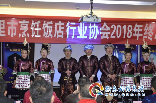 接著欣賞由各個(gè)飯店精心排練的文藝演出節(jié)目,凱里市侗嘎佬餐飲有限公司《侗族大歌》《世紀(jì)勞動(dòng)舞》,盤古寨的舞蹈《錦雞在飛》、《苗家地方花樣》,九門寨石鍋魚舞蹈《寄明月》,牛滾蕩《葉竹青青》演奏,黃興全大師為年會(huì)獻(xiàn)墨寶等節(jié)目讓大家看得津津樂(lè)道,給晚會(huì)添加更多樂(lè)趣。
