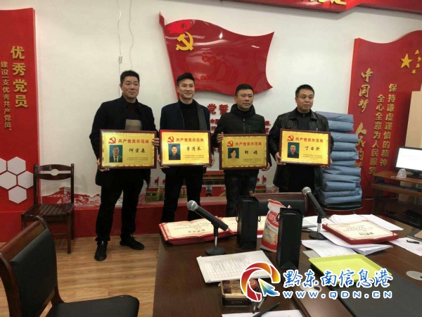 會議對黨建活動中的積極分子以及2018年度的優秀共產黨員等進行了表彰。黨建指導員楊天彬和凱里市市場監督管理局大十字分局局長曾劍同志為他們頒獎,并為2019年評選出的“共產黨員示范崗”的黨員授牌!