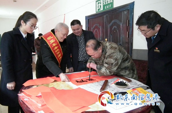 本網訊 1月29日,貴州省凱里市書法學會和凱里車務段工會,在凱里火車站鐵路俱樂部開展“喜迎新春˙送對聯”活動,為鐵路職工、周邊群眾和過往旅客送上春節的祝福。