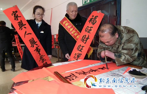 此次“喜迎新春˙送對聯”活動,凱里市書法學會和鐵路工會共送出五百多幅平安對聯,豐富了群眾的精神文化生活,受到大家的歡迎,營造了喜慶祥和的節日氛圍,也為鐵路春運安全工作打下良好基礎。(姜澤鵬 攝影報道)