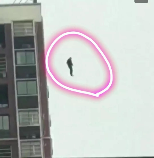 另一個視頻就讓人感覺到恐懼了,一個人從樓頂上跳下來了,嚇傻了很多人,現場尖叫聲一片。