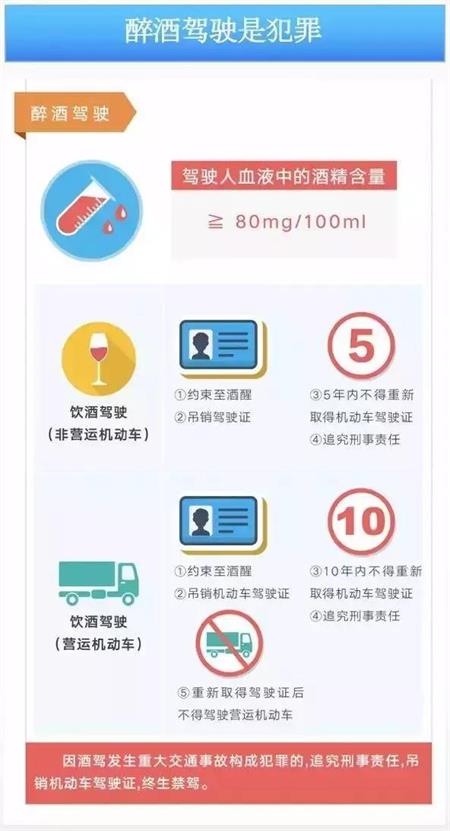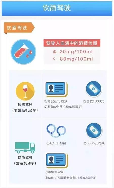 交警部門在檢查駕駛?cè)耸欠窬岂{時(shí),不是檢查您喝的什么酒,喝完酒多久開的車,我們判定酒駕的標(biāo)準(zhǔn)和依據(jù)是在檢查時(shí),您身體內(nèi)血液中的酒精含量是多少,每百毫升血液中酒精含量大于等于20毫克構(gòu)成酒后駕駛,大于等于80毫克,構(gòu)成醉酒駕駛。