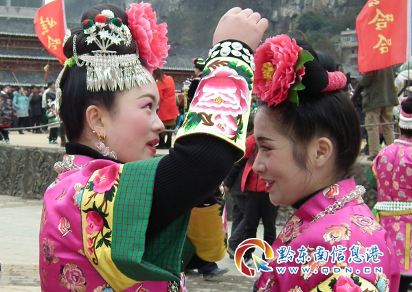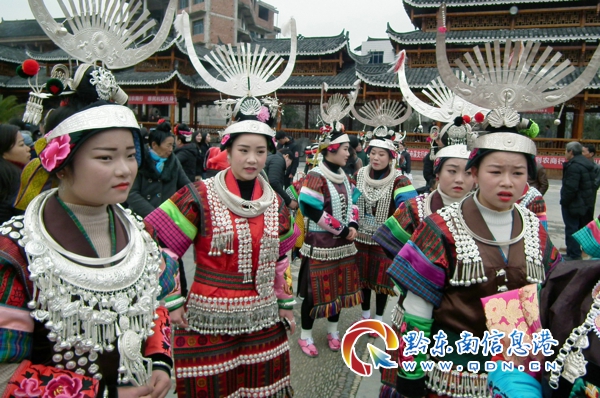 本網(wǎng)訊 2月21日,貴州省凱里市舟溪苗族姑娘和小伙子們帶著銀花首飾,穿著艷麗節(jié)日的盛裝翩翩起舞慶祝一年一度的中國(guó)·凱里舟溪甘囊香國(guó)際蘆笙節(jié),每天吸引了5萬(wàn)多少數(shù)民族群眾和中外游客。