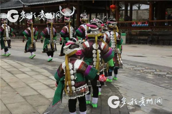 蘆笙場上,千百支蘆笙同時吹奏,這時戴著銀花首飾,穿著艷麗節日盛裝的姑娘和小伙子們隨著悅耳的曲調盡情地跳著蘆笙舞。比較常見的是《祝嘎勒》,由三、五、七、九支大中小型蘆笙,用同一曲調吹奏,并由蘆笙頭或蘆笙手吹笙領舞,然后是穿盛裝的姑娘、中年婦女、年邁老嫗圍圈牽手跟著跳,隨著蘆笙的曲調,操著統一的步伐,徐徐向前移動,場面蔚為壯觀,吸引幾萬中外游客前來觀看。(吳映璇 龍文芳 劉有姜)