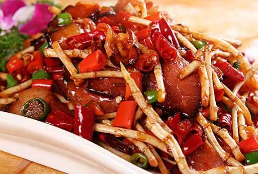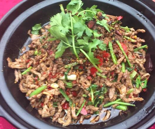 推薦理由:本道菜采用自然放養(yǎng)的本地嫩土雞(俗稱童子雞)和本地黃壤土生長(zhǎng)的青椒一起爆炒,肉質(zhì)鮮糯、鮮辣可口,令人大快朵頤。