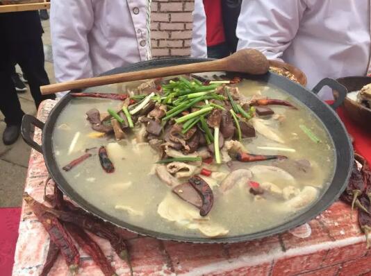 推薦理由:庖湯是凱里農(nóng)村宰殺年豬時(shí)必吃的一道主菜,一般是火鍋吃法。主料是新鮮的大塊薄片豬肉、粉腸、血旺等,有清湯、辣味兩種口味。庖湯的特點(diǎn)是味道鮮美、清醇甘香、油而不膩、營(yíng)養(yǎng)豐富,回味無(wú)窮。隨著歲月的流逝,庖湯逐漸成為一道頗具地方風(fēng)味,深受人們歡迎的時(shí)令菜肴。