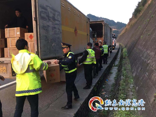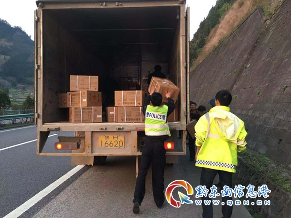 本網(wǎng)訊 3月19日下午,黔東南州交警支隊(duì)高速一大隊(duì)值班室接到報(bào)警電話稱,在滬昆高速三棵樹服務(wù)區(qū)前方一輛載有兩噸雷管的危險(xiǎn)品運(yùn)輸車,因?yàn)闄C(jī)械故障無(wú)法繼續(xù)向前行駛,停靠在了應(yīng)急停車帶上。