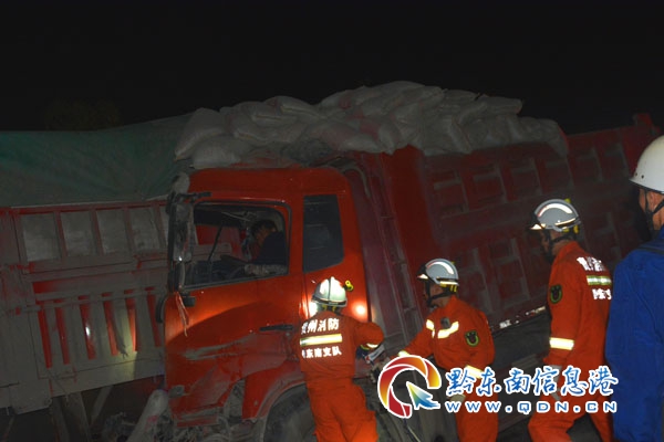 本網(wǎng)訊 3月31日0時(shí)30分,凱里市消防大隊(duì)清江路中隊(duì)接到報(bào)警:位于凱里市爐山鎮(zhèn)爐碧大道白秧坪路段,兩車追尾,一人被困,急需救助。接警后,清江路中隊(duì)立即出動(dòng)趕赴事故現(xiàn)場(chǎng)進(jìn)行處置。
