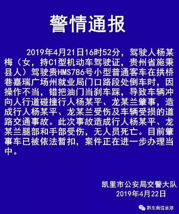 4月22日下午17時31分,凱里市公安局交警大隊發布了警情通報。