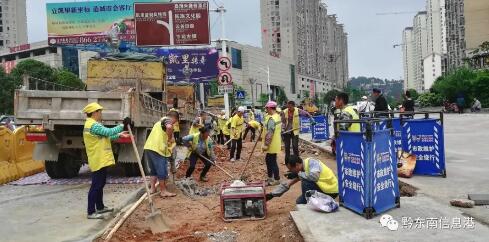 據施工單位海峰公司負責人顧凱黔介紹,迎賓大道、友莊南路交叉口紅綠燈處—友莊南路12號大院售樓部道路拓寬建設從2018年12月13日進場施工,道路長380米,由于道路下的地下管線錯綜復雜,道路開挖時要避開并保護好地下管線,所以建設施工的時間比較長。