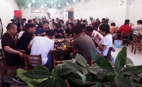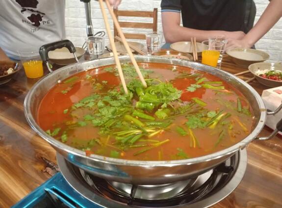 客人陸續來到,到了當天下午7點過鐘,服務員端菜上桌,就只有一個,紅酸湯羊肉,外加了一份餃子。在凱里酸湯是“家常菜”了,所以看到它,我們都以平常心對待。