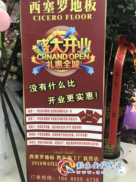 本網(wǎng)訊 今天上午,位于凱里國(guó)際商貿(mào)城國(guó)際家居建材廣場(chǎng)C館的西塞羅地板黔東南總代運(yùn)營(yíng)中心正式開業(yè),這標(biāo)志著又一張地板知名品牌挺進(jìn)黔東南,廣大市民多了一個(gè)可靠的選擇。