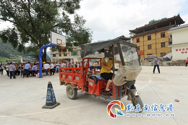 凱里市交警大隊車管所進村為老百姓辦駕照。圖為考試現場。
