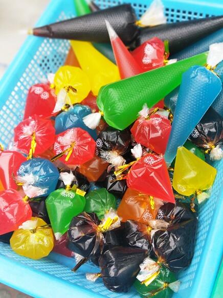 “如果是你們家孩子,你會給他吃這些五顏六色的東西嗎?”不久前,凱里市民吳女士在孩子放學回家的路上忍不住發了這一條朋友圈,還配了一張色彩鮮艷類似果凍糖的圖。“看到學校門口那些花花綠綠,用簡易塑料袋裹成圓錐形的水果糖,我很氣憤。真想走上前去問一問這些無良商家,把這些名字都叫不出的三無產品賣給別人家孩子吃,良心不會痛嗎?”除了這些形形色色的糖果,一路上還有五顏六色的汽水,冰霧一樣的炒雪糕,早上和中午還有炒粉糯米飯烤豆腐等供應。