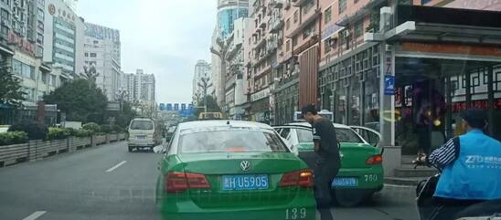7月2日下午4點左右,小編駕車經過韶山南路,看到前方一輛出租車,明目張膽的停放在道路中間載客,導致后方車輛“排隊”。