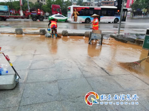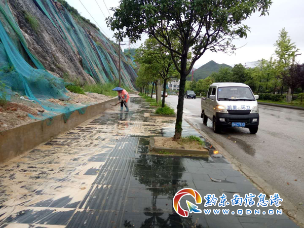 本網訊 自7月6日以來,凱里城區迎來連續降雨天氣,8日13時,市氣象臺將暴雨黃色預警信號升級為暴雨橙色預警,經過幾番暴雨襲城,不僅嚴重影響了市容環境,也給市民的出行帶來諸多不便。市綜合行政執法局環衛處積極采取措施,在完成正常的街道清掃作業后,加派人手、出動清掃車,迅速開展推水清淤作業,清理樹枝、樹葉及生活垃圾等漂浮物,確保道路在最短的時間內恢復干凈整潔。
