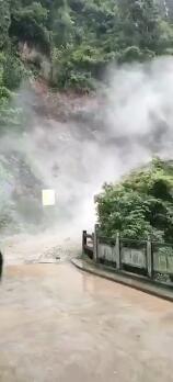 從網友提供的視頻可以看到,山體滑坡地點位于凱里市南花苗寨寨門口的風雨橋橋頭,沒幾秒該段道路就被滑下來的泥石完全覆蓋。