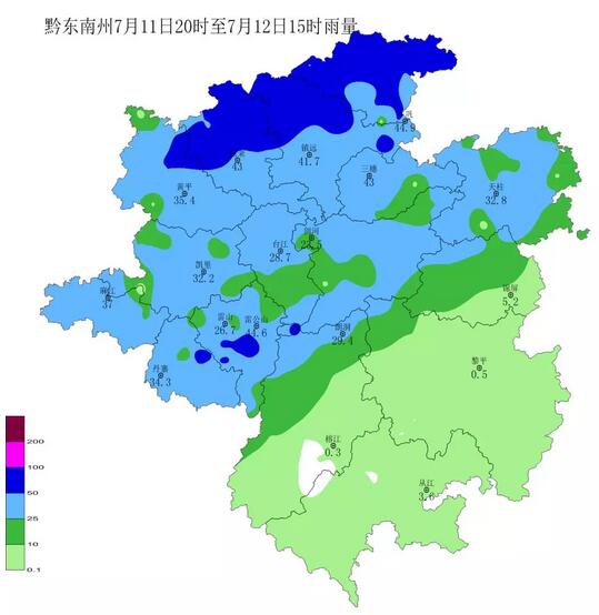 黔東南州氣象臺發布持續性強降雨天氣:據監測,7月11日20時~12日15時,全州共出現1站大暴雨(鎮遠大地100mm);38站暴雨(岑鞏18站;鎮遠7站; 施秉6站;雷山4站;丹寨1站;劍河1站;黃平1站)。預計12日夜間全州陰天有中到大雨,清水江流域部分鄉鎮有暴雨或大暴雨;13日全州中到大雨,州中南部地區部分鄉鎮有暴雨;14日全州小到中雨,部分鄉鎮有大雨或暴雨;15日強降雨減弱,全州陰天有小到中雨,部分鄉鎮大雨。持續性強降雨天氣,需重點防范山洪、滑坡、塌方、城鎮內澇等災害。