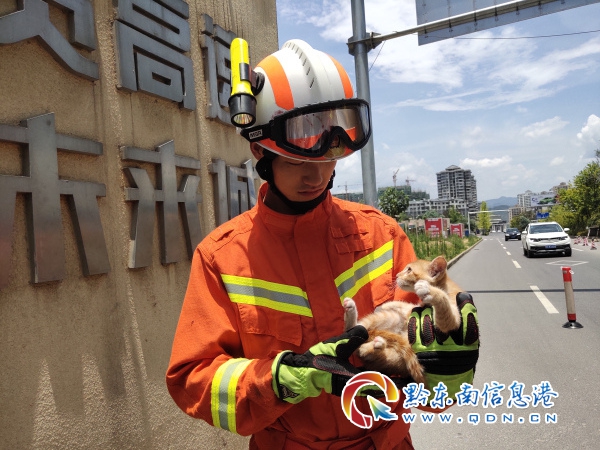 很快,凱里市消防大隊特勤中隊的消防車到場,在現場觀察了一會兒后,消防指戰員決定下井救援。“當時我去看這么小的井,消防員下去時都是小心翼翼的,不敢隨意挪動,終于到了井底小貓卻害怕得躲了起來,無論消防員怎么轟都不出來。”張女士說。