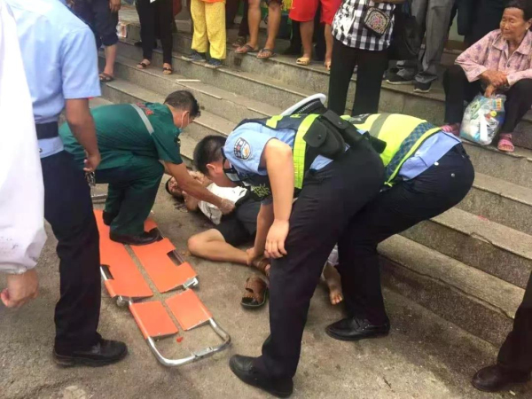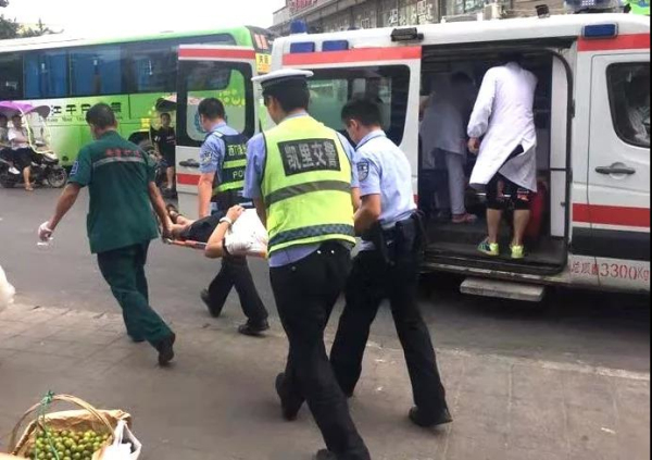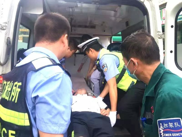 幾分鐘后急救車趕到現場,據醫護人員說可能是天氣太熱,加上他又喝了不少酒,導致呼吸困難突然昏迷。現場交警和派出所民警協助醫護人員一起將男子抬上急救車前往醫院接受救治,據了解,該男子經過救治后已無大礙。