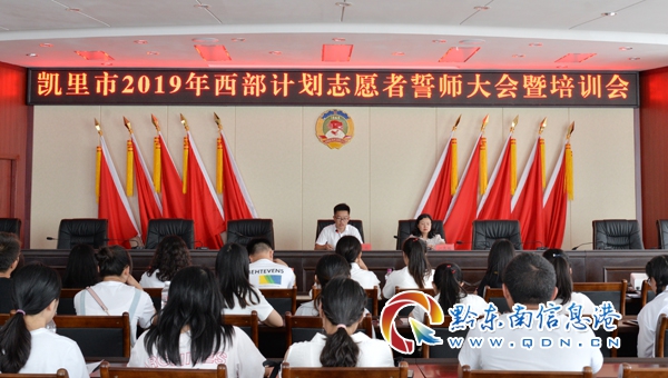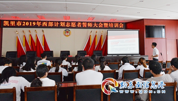 本網(wǎng)訊 7月20日下午,凱里市2019年西部計劃志愿者誓師大會暨培訓會在市行政中心舉行,45名大學生西部計劃志愿者參加會議,會議結(jié)束后即分赴全市各基層鎮(zhèn)街進行為期一至三年的服務。