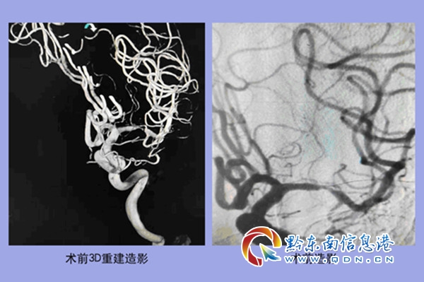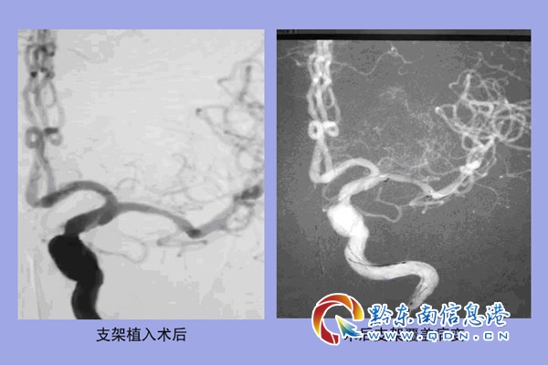 支架植入術是治療顱內血管狹窄,使血管部分或全部恢復血流的先進技術,手術選擇球囊擴張成形術+支架置入術,手術過程:全麻后選用6F導引導管系統置于左側頸內內動脈虹吸段,微導絲在視圖下置于大腦中動脈M3段,予球囊擴張血管,觀察血管明顯改善,十分鐘后觀察血管有回縮狹窄趨勢,使用自膨式支架行支架植入,沿導絲用自膨式支架放置狹窄處,然后釋放支架。支架放置后再次造影顯示支架覆蓋狹窄處良好,狹窄血管改善90%,責任血管供血區域顯影良好,撤出導絲及導引導管,手術順利完成。術后患者恢復良好。