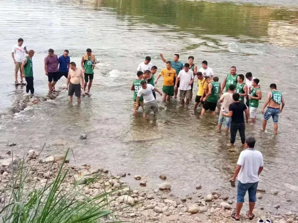 據(jù)介紹,事發(fā)時是17日下午6點(diǎn)40分左右,10歲的男孩楊陽下河游泳,但因?yàn)樗畹木壒剩簧鞅粵_走,非常危險(xiǎn)。他被沖出三、四米左右時,也在游泳的李小中(31歲,凱里市三棵樹鎮(zhèn)浪寨村人)、三中(系苗族名字,凱里市旁海鎮(zhèn)地午屯寨人)二人見狀,奮不顧身尾隨施救,但是進(jìn)入深水區(qū)后,李小中突然失蹤,消失在了水面上,三中則將孩子拉上了河岸,轉(zhuǎn)危為安。