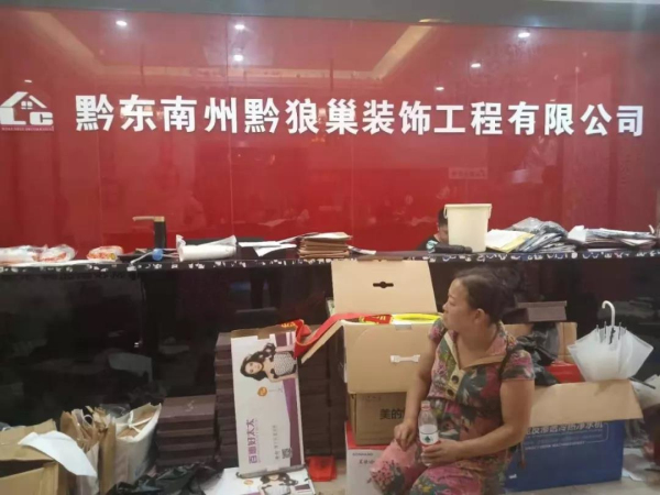 8月28日中午,小編接到電話以后立即趕到這家叫黔狼巢的裝飾公司了解情況。它位于凱里州府路與北京東路的交叉路口處,也就是原凱里鑫麒麟賓館的二樓。在公司的大廳,聚集了許多人,有的坐著,有的站著,還有的躺在沙發上睡大覺。