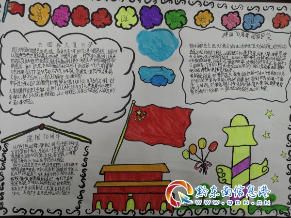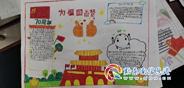 在手抄報制作活動中,小朋友們用多彩的畫筆認真的描繪出五星紅旗、天安門、紅領巾,寫下國歌、國慶的由來、《我愛你中國》等文字,在小小的白紙上畫出心中的中國夢。