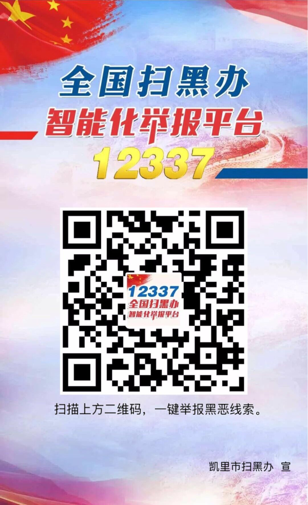 舉報信箱:凱里市公安局228室掃黑辦(郵編556000)