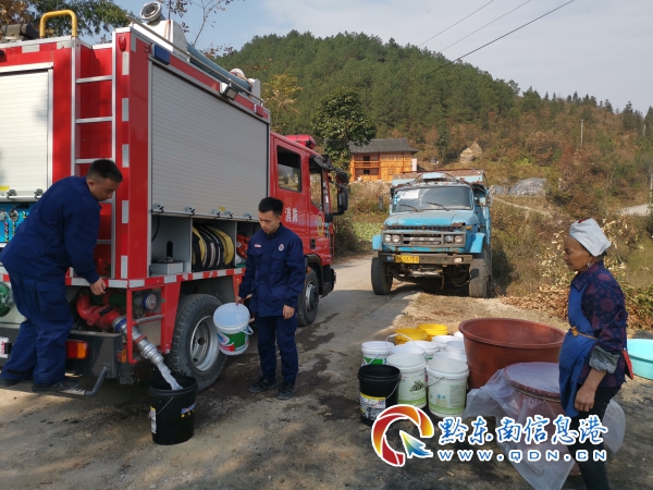 據了解,該村停水四天來,凱里大隊來到該村送水,受到了當地群眾的一致贊揚。龍場鎮狗場村的村民說道:“感謝消防隊此次義務送水,解決大家的生活用水難題。”