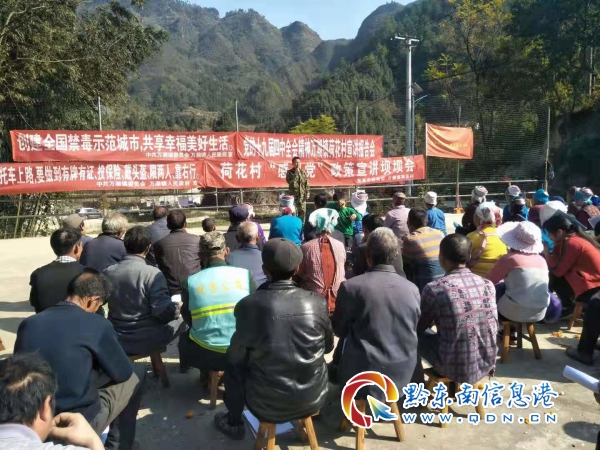 活動中,通過懸掛橫幅、發放資料,現場講解的形式向參加壩壩會的村民講解毒品的種類、危害和涉毒違法相關法律法規知識,向他們介紹凱里市創建全國禁毒示范重要意義。告誡大家堅決抵制毒品侵害,鼓勵他們積極舉報毒品違法犯罪線索,動員他們要積極參與禁毒示范創建活動和脫貧攻堅工作,為構建和諧平安富裕萬潮貢獻自己的力量。引導他們積極參與禁毒滿意度測評工作,為凱里禁毒工作投上“滿意”的一票。活動現場,工作人員向村民發放脫貧攻堅相關宣傳手冊、禁毒知識讀本、《致全體市民的一封信》等宣傳資料。