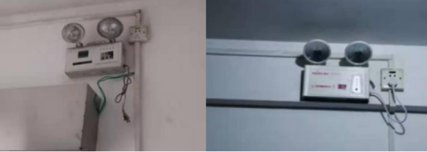 消防通道應(yīng)急照明燈未正確安裝整改前后對比