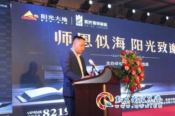 凱里陽光翡翠豪庭項目城市總經理黃友會在講話時說,作為一個剛進入凱里的房開企業,今天能有幸在這里與各位老師們共度周末,他感覺很幸福。“這份幸福來源于我們當地政府對教育的關心和重視;來源于我們教育系統對教師的尊重和關愛,讓我們的老師們真正將‘點燃成功人生’貫徹到自己和每一個學生的發展中。”