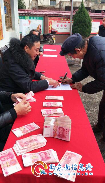 本網訊 1月18日,黎平縣德鳳街道羅寨蛋雞養殖專業合作社召開了分紅大會,向羅寨社區49戶貧困戶發放分紅82800元,兌現了合作社成立之初對貧困戶許下的承諾。