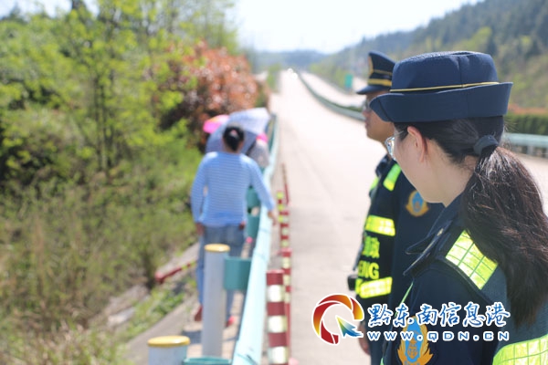 本網訊 4月7日下午15點黎平路政執法大隊路政員開展巡查時,發現在距離S15松從高速K11+500黎平服務區下行出口匝道兩百米處,有一名男子站在原地四處張望,路政員見此情景立刻將車停在安全位置,急忙下車詢問情況,經詢問該男子是要高速公路對面的山上掛親,他準備圖方便橫穿高速抄近道。路政員了解情況后,對該男子進行批評教育,現在是節假日返程高峰期,車流量很多,這樣橫穿高速公路非常危險,這樣不僅危及個人生命安全,也給行駛在高速公路上的司乘人員造成嚴重的安全隱患。男子聽到路政員這樣說,也意識到自己的錯誤,答應以后不會在圖方便橫穿高速公路。最后路政員指引該男子向黎平服務區的下穿涵洞方向走去。
