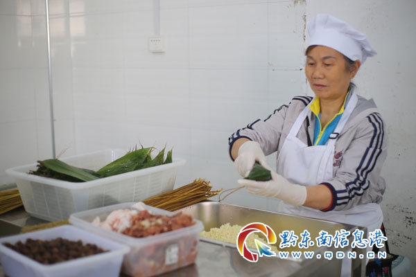 據(jù)悉,出生在雙江侗寨的賀承美女士,自幼跟著奶奶、母親學(xué)包粽子,對(duì)侗家粽子有著獨(dú)特的研究,現(xiàn)在她和易冬梅創(chuàng)辦的天天佳食品公司,已經(jīng)吸納來自水口、肇興、德鳳街道等六個(gè)鄉(xiāng)鎮(zhèn)8戶貧困戶14人在這里長期就業(yè),每天每人計(jì)件包手工粽子,每天收入工錢在200元以上。通過賀承美、易冬梅心傳口授,在這里打工的婦女姐妹們,包粽子手工技術(shù)提高很快,如從肇興鎮(zhèn)肇興村6組搬進(jìn)城的侗族婦女陸慶英每天包粽子在500個(gè)以上,每個(gè)包粽子的手工費(fèi)0.5元,她每天收入在250元以上。