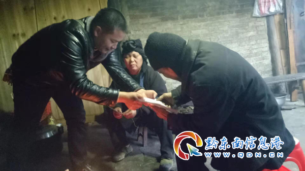 地坪鎮滾大村第一書記賀世林(左)入戶將分紅資金送到殘疾人手中