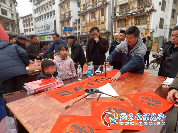 本網訊 連日來,隨著新春佳節臨近,雷山縣開展以“文軍扶貧免費書寫春聯”為主題活動,組織雷山縣書法家協會12位書法老師走村串寨義務為村民書寫春聯,送上“文化年貨”和新春祝福,深受當地群眾感激不盡。