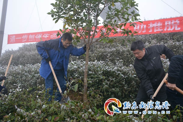 本網訊 2月11日(農歷正月初七)節后第一天,雷山縣開展以“建設多彩貴州·走向生態文明新時代”“進一步加強生態茶園綜合利用助推脫貧攻堅”為主題的2019年義務植樹活動。當天,由雷山縣委、縣人民政府組織縣直機關單位黨員領導干部160多人到望豐鄉三角田村跑馬道公路上茶葉基地內義務栽植“桂花樹苗”278棵。
