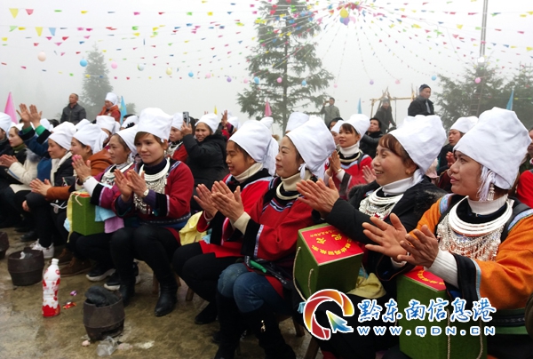 群花聚首美萬(wàn)村,鳳凰回鄉(xiāng)春增色。2月11日,苗族民眾吹著蘆笙跳著同心舞,歡迎姑媽回娘家過(guò)年。雷山縣達(dá)地水族鄉(xiāng)小烏村百余名外嫁他鄉(xiāng)的姑媽身著漂亮的水族服裝攜姑爹們,從天南海北挑著脫貧致富的禮品浩浩蕩蕩回到“娘家”齊聚一起,喜慶小康的春節(jié)。