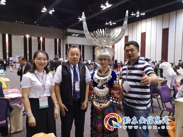 圖為苗家阿妹備受各國旅游業(yè)界人士青睞合影留念的情景