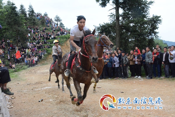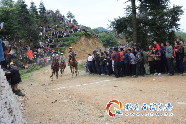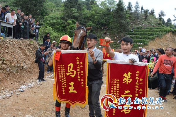 本網(wǎng)訊 5月10日,雷山縣望豐鄉(xiāng)三角田村舉行“爬坡節(jié)”跑馬爭霸賽,來自黔南州都勻市盧愛龍的19號“馬王”勇奪冠軍。