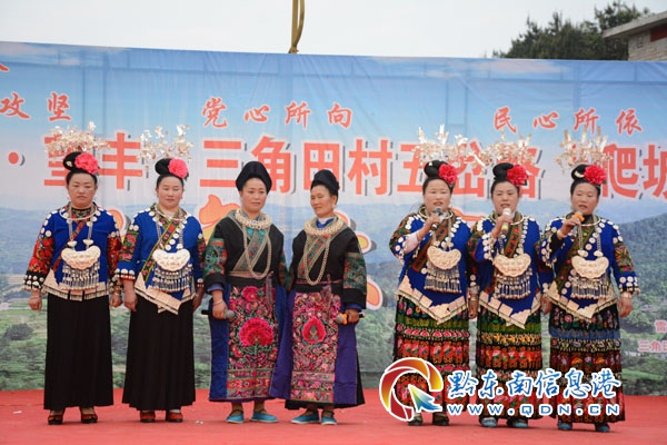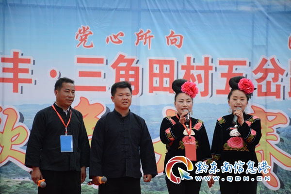為了歡慶民族節日,展示多姿多彩的民族民間文化,增強民族團結,振奮民族精神。節前,在三角田村“兩委”三角田村五岔路“爬坡節”組委會的組織下,全村240多戶村民積極自籌資金和得到在外工作的三角田村籍干部職工以及有關企業老板的支持下,于5月9—10日舉辦以“不忘初心,牢記使命,脫貧攻堅,黨心所向,民心所依”為主題的2019雷山縣望豐鄉三角田村五岔路“爬坡節”苗歌大賽。來自雷山、臺江、凱里等地男女組合隊(苗歌自由唱17個80人、情歌對唱18個90人)35個、170名苗族歌手,他(她)們有的二三十歲青年、有的四五十歲的中年、也有的七八十高齡的老人,一雙雙男女聚集游方場報名參賽。在苗歌對唱現場,該村活動評委采取抽簽對號入座,面對面地對唱起了苗族情歌大展演。第一天(5月9日)在五岔路山坡上舉行情歌自由合心人男女歌手(兩男兩女以上)組合對唱。當天經過比賽,最后,來自臺江縣歐住伍組合獲得情歌“最美好聲音”第一名;來自凱里市舟溪鎮余昌秀組合獲得第二名;來自雷山苗鄉人組合獲得第三名。