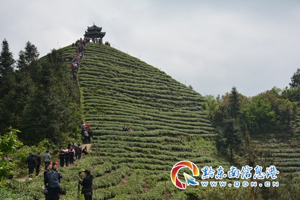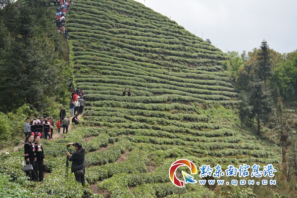 本網(wǎng)訊 5月9日,筆者走進(jìn)“茶葉之鄉(xiāng)”的雷山縣望豐鄉(xiāng)三角田村采訪,看到該村五岔路幾個(gè)山坡和三角田小學(xué)的背后山,滿坡滿嶺都是綠色產(chǎn)業(yè)“金葉子”,這天是該村五岔路爬坡節(jié),不少游客和遠(yuǎn)方的苗家女在茶園基地留影。預(yù)計(jì)今年全村茶葉總收入可達(dá)364.5萬元,戶均收入可達(dá)14638元。